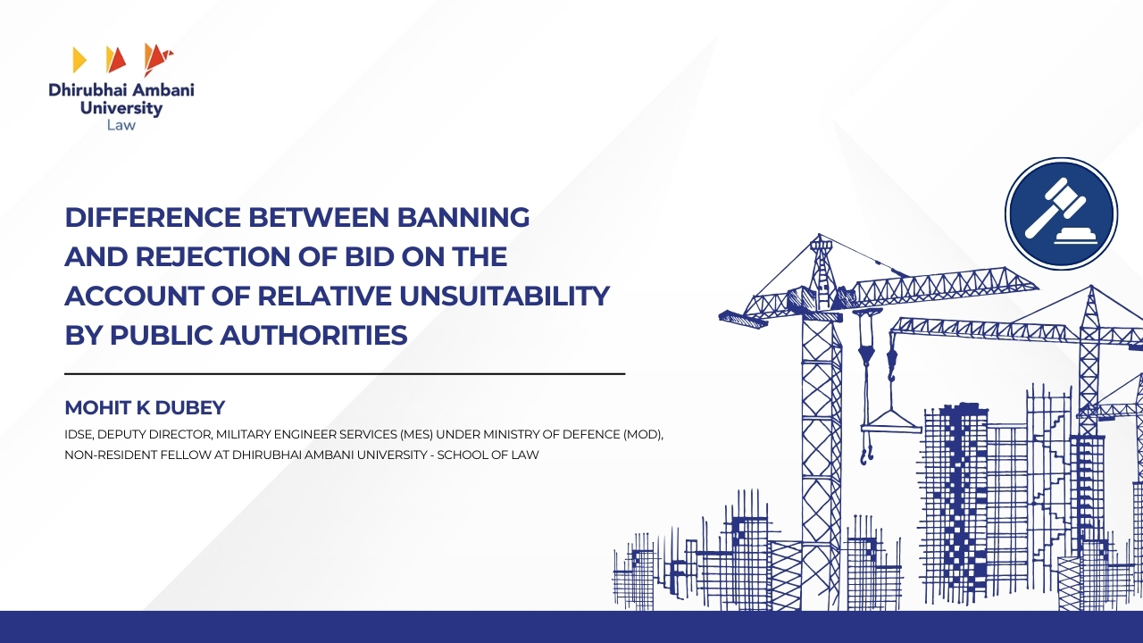 The topic of banning and blacklisting of contractors needs further deliberation. However, this blog attempts to restrict the discussion only to the “Distinction between banning/blacklisting and rejection of bid on account of relative unsuitability”. It can be concluded that the courts have struck a balance between judicial scrutiny of the decision-making process vis-à-vis responsibility of public undertakings to execute public infrastructure on time. Courts have emphasised that the contractor is only entitled to fair treatment, and principles of natural justice shall not dictate tender scrutiny committee while rejecting the bid of tenderer who falls short of eligibility criteria.